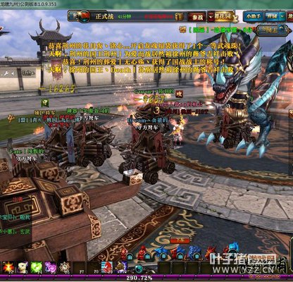 晚上8点刚过,只见【龙啸九州】荆州与徐州大部队已经通过中立互通使者来到盟国青州的边境,组织好三国联盟防守阵线,一起抵制幽州的国战进攻。此时进攻方幽州也携手盟国强势杀到了青州边境,铁骑黑压压地冲破青州防线,用迅猛的速度直杀青州阳平关,集中战火输出镇关守将,大部队杀到青州王城。幽州战士们一面击杀金甲将军,一面让高战冲杀到青州王城内城,然后组织了大部队战士领取国战弩车,通过青州大鼎有利位置杀到内城白虎与青龙处。与此同时青州也及时回防,可是在领取战车上青州是吃亏的,因为盟国兄弟们无法直接领取,只能通过青州战士邀请转让的模式获得战车,这样就会延误很多时间,同时因为要防守朱雀玄武,所以也分散了青州的战斗力,因此青州在战车上明显处于劣势,让幽州几波战车进攻之后就双爆白虎与青龙,中间神兽遭受幽州的猛烈攻击,虽然青州也及时拉起帮令瞬移回防守,同时战车也奋力输出,极力想抢回战车BOSS,无奈幽州三国的战士们输出力量很强大,进度非常迅猛,最终青州防守国战失败,幽州获得了胜利。
