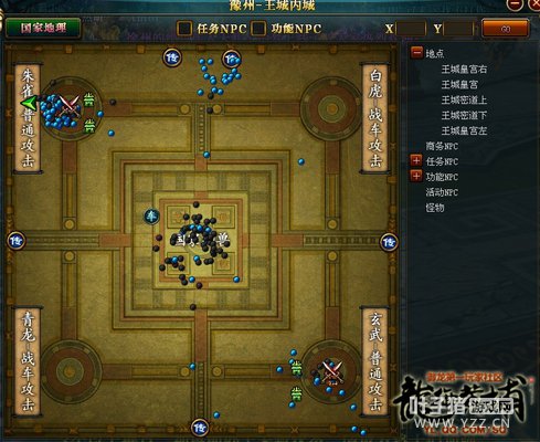 国战开启后,【傲视天下】幽、江两国到达战场,豫州及其盟国不断围追堵截,仍然没有阻挡幽、江两国前进的脚步,国战很快进入到了内城阶段,进入内城后,幽、江两国并没像一般国战时,选择领取战车,而是兵分两路,直奔朱雀、玄武,两个神兽很快被攻下,国家神兽激活,幽、江两国集火国家神兽,而豫州则第一时间打回了朱雀,朱雀被拿回后,国家神兽就不能继续被攻击。为了不让幽、徐两国两点齐爆激活国家神兽,豫州指挥命令将士们给玄武神兽留血,让国家神兽不能被攻击。可虽然指挥下了命令,玄武还是很快被拿回,给了幽州、江州再次两点齐爆的机会。幽、江两国当然不能错过这样的机会,朱雀、玄武双爆,再次进攻中间国家神兽。