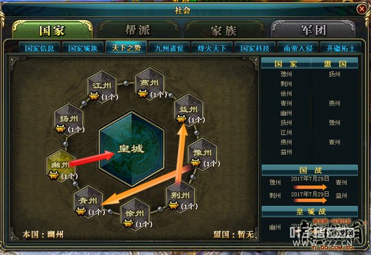 幽州惹众怒,皇城战集聚多国大部队 因为幽州比较崇尚战斗的国家,经常四处砸车,惹得多国针对,自身实力又不是最强国家,所以各国不管实力强弱,都想与幽州战斗一番。 幽州宣皇城战,据说集聚六个国家的大部队堵截幽州,幽州这边只有一个还没有结盟的益州帮忙,可以说幽州拿皇之路阻碍重重。