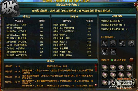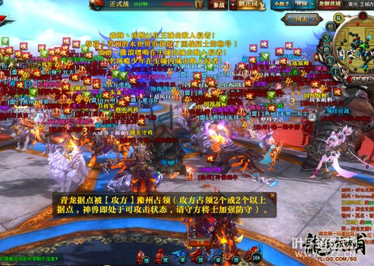 御龙在天国战有时候不是一国对一国,对战双方如果都有盟国,那么国战会演变成四国混战,进攻方优势更多,守方则需要更多的实力防御国战。 今天关注的【王心无界】豫州进攻青州国战,进攻方豫州有着盟国扬州帮忙,守方青州有着盟国燕州帮忙,四国对战,人数比较多,厮杀的格外激情,不过豫州与扬州更为强势,再加上作为进攻方有着很大的优势,青州与燕州难以招架,拼尽全力也没有阻挡住豫州进攻的脚步,最终豫州顺利获得国战胜利。
