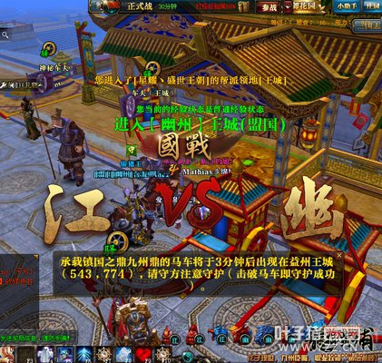 晚上国战正式时间一到,江州便按照自己的参战部署安排一部分战士前往幽州进攻,而剩下的大部队则携手盟国扬州强力进攻益州国。虽然益州有着与幽州和青州的三国联盟防守,可是益州提供战车给盟国的速度明显不到位,所以让扬州江州在战场上占据了非常大的优势,很快就击爆白虎与青龙,同时双杀了人物神兽朱雀玄武。在这样四点齐爆的情况下,纵使防守方三国联盟奋力堵杀也无法改变国战失败的悲剧。 江州扬州在获得益州国战胜利之后,马上转战进攻幽州的国战战场。同时,幽州、青州、益州也纷纷到位防守,其实三国联盟的总战斗力还是比较强大的,特别是幽州和青州,他们拥有15星世界战斗力个人榜的第一第二位。虽说如此,但今晚幽州的战车不如进攻方多,哪怕有着本国迎战可以拉令和瞬移的优势,在防守白虎与青龙上还是非常吃力。此时江州兵分两路,一面派大量战车进攻,一面派高战击打朱雀玄武,让防守方的战力有所分散,并多次运用战车牵制配合击杀朱雀玄武的战法,一次次冲刺击打幽州中间神兽。五个国家的战士执行力都非常到位,他们一直在比拼输出,比拼勇气和为国牺牲的精神,特别是幽州高战禁卫军,更是不辞劳苦来往奔波在朱雀玄武间,伤亡惨重。国战已经进入加时战,距离结束时间只有十多分钟了,此时江州扬州加快加大战车进攻步伐,大量战车蜂拥而上,强力击爆强力,并把白虎打到残血,开始击打中间神兽。面对如此战况,幽州指挥官虽然迅速给神兽加血,可是在回防青龙上输出力度依然不够,最终在距离国战结束前十分钟时,神兽被击杀,国战失败。江州和扬州获得了第二场国战胜利,可喜可贺!