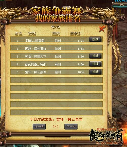 随着家族争霸赛进入尾声,各大家族竞争更为激烈,各种出战部署与策略纷纷上演着,很多家族为了冲刺顶峰不断的努力扩大家族的战斗力。今天依卡与朋友们分享一场激情大战是来自【猛龙逐鹿】扬州“御超、诸神黄昏”家族与徐州“紫轩、枫云禁军”家族,下面让我们全程进入观摩两个家族的激烈大战。