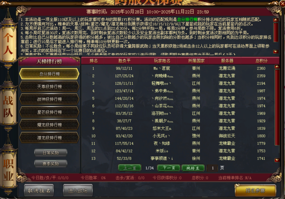 拔剑平四海,横戈却万夫。经过近一个月的角逐,1V1跨服天梯赛已圆满落下帷幕。本次我们特别邀请到四个分组的天梯赛冠军,一同聊聊他们的巅峰之路与赛事感悟。 公测服冠军 【龙腾问鼎】丶菲我莫属ii 记者小喵:将军先自我介绍一下吧~ 丶菲我莫属ii:大家好,我是来自【龙腾问鼎】荆州的丶菲我莫属ii 记者小喵:整个赛事体验如何呢? 丶菲我莫属ii:这次天梯的体验感挺不错的。官方做了职业调整后,不像以前大家都只选斧头、银枪,职业多元化的特点很突出,玩家的职业选择也丰富了不少。 记者小喵:比赛前有想过自己能拿冠军吗? 丶菲我莫属ii:其实还挺有信心的,因为我的账号在细节上做得很到位——比如宠物升到了30阶,混沌达到18级,还打造了物法双修的两套减伤和三套6等穿透,准备得很充分。 记者小喵:您觉得本职业在天梯赛有优势吗? 丶菲我莫属ii:我玩的是银枪,这个职业有高额减伤buff,再加上本身151技能的无敌效果,在天梯里还是挺有竞争力的。 记者小喵:有没有哪场比赛让您记忆犹新? 丶菲我莫属ii:最难忘的应该是最后一场比赛吧,连着碰到了本服同一个玩家8次,导致他与前十无缘 ,也希望他下期天梯继续努力 记者小喵:对后续天梯赛的优化有什么建议嘛? 丶菲我莫属ii:有两个小建议:一是进入跨服本土服务器时需要再次解除二级装备锁,切换减伤之类的操作会很不方便;二是本服的“粉红宝贝”“护花使者”这些图标,在天梯里希望能隐藏,现在很多玩家靠这些图标分辨敌人,这样“天梯蒙面”的设定就没什么意义了。 怀旧服冠军 【群龙纵横】v暮色伊人v 记者小喵:将军先自我介绍一下吧~ v暮色伊人v:大家好,我是来自【群龙纵横】荆州的v暮色伊人v 记者小喵:这次赛事体验感觉如何? v暮色伊人v:体验非常棒!赛场上能看到各种职业登场,尤其是我们【群龙纵横】有不少厉害的操作手。不过比赛里有随机技能,多少带点运气成分。 记者小喵:最初就有冲击冠军的目标吗? v暮色伊人v:天梯开始前我们团队测试了各种职业/装备/名将/减伤搭配,同时也请来了啊谦,代我出战天梯赛场,目的就是为了拿冠军,但是随着比赛的深入,我认为我们团队可以取得更好成绩,最后包揽了天梯榜前四。 记者小喵:本职业在天梯赛是否有优势呢? v暮色伊人v:这次职业调整后,常见职业都能在天梯里发光发热,不存在太大的职业差距。胜负关键还是看装备、减伤、马名将配置,以及玩家的操作水平。 记者小喵:有没有哪场比赛让您印象深刻? v暮色伊人v:难忘的比赛还是蛮多的,比如跟v惩恶扬善v打的时候压力还是蛮大的,其他比赛结果都在意料之中。 记者小喵:对后续天梯赛的优化有什么建议嘛? v暮色伊人v:建议取消随机技能选项,这样能更好地展现各玩家的操作,减少随机技能带来的运气成分,负面状态(100%命中)当两个玩家等级差距较大,就有可能只打出伤害却未能命中负面状态。这点也希望能优化一下。 绿六原始服冠军 【龙腾云涌】Mx丶茗宸 记者小喵:将军先自我介绍一下吧! Mx丶茗宸:大家好,我是来自【龙腾云涌】青州的Mx丶茗宸 记者小喵:参赛初期,是否将夺冠设定为目标? Mx丶茗宸:一开始目标是冲前三,毕竟前三奖励挺丰厚的哈哈。打下来感觉状态越来越顺,就想着全力冲第一了。 记者小喵:本职业在天梯赛是否有优势? Mx丶茗宸:我玩的重剑,在原地战斗时优势很明显,但碰到银枪那种擅长拉扯的职业,就会陷入追不上、打不死的尴尬局面。 记者小喵:有没有哪场比赛让您特别难忘? Mx丶茗宸:有一场碰到“轻舞”,打得特别胶着,双方你来我往谁也打不死谁。最后时刻我本来追着他打,赢了就能拿分,结果他突然回血反追,我最后侥幸打成平局,现在想起来还很刺激。 记者小喵:对后续天梯赛的优化有什么建议么? Mx丶茗宸:最后一天潜龙九霄区刚破封,但我们区的天平系统还是按他们150级破封前的属性来匹配,导致我那天都不敢打,只能小心翼翼保第一。希望后续天平系统能及时更新,跟上各区破封进度。 真金焕新服冠军 【龙吟苍穹】Lucky扶苏 记者小喵:将军先自我介绍一下吧~ Lucky扶苏:大家好,我是来自【龙吟苍穹】豫州的Lucky扶苏 记者小喵:整个赛事体验如何呢? Lucky扶苏:整体感觉很刺激,就是真金服的奖励有点差强人意,希望后续能优化一下哈哈。 记者小喵:您的职业在天梯赛有优势吗? Lucky扶苏:我玩的霸刀在天梯里没有特别明显的优势,但我是物法双修的配置,选择面会更广一些,打起来也更灵活。 记者小喵:有没有什么难忘的经历想和大家分享? Lucky扶苏:最难忘的不是某一场比赛,而是和“逍遥”、“鑫鑫”还有家族兄弟们一起在YY研究职业和打法的时光。大家聊战术、开玩笑,氛围特别好,比赛也更有动力了。 记者小喵:对后续天梯赛的优化有什么建议想法吗? Lucky扶苏:希望能优化一下单人PK的职业平衡,给更多职业登场的机会。现在盾斧在单挑里几乎无解,多少影响了其他职业玩家的体验。 一场天梯赛,不仅见证了冠军们的巅峰时刻,更汇聚了玩家们对游戏的热爱与期待。从职业多元化到平衡优化,从赛事细节到社交温情,玩家的每一条建议都是游戏成长的动力。让我们共同期待下一届天梯联赛,见证更多英雄崛起,续写热血传奇! [编辑:月光下完美]