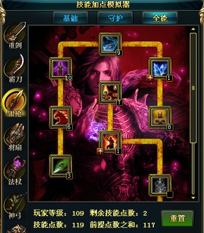全能进阶-110之前 灵蛇一击 (能加多少加多少) 百里冰+1 (20秒冷却效率不高没必要,只一点) 回光返照 (必满) 全知全能 (必满) 野马无缰 (必满) 夜叉探海 (有多少加多少) 舞动天下 (有多少加多少) 惊天动地+1(30秒虽然真实伤害技能,但是效率太低,只一点) ![]()