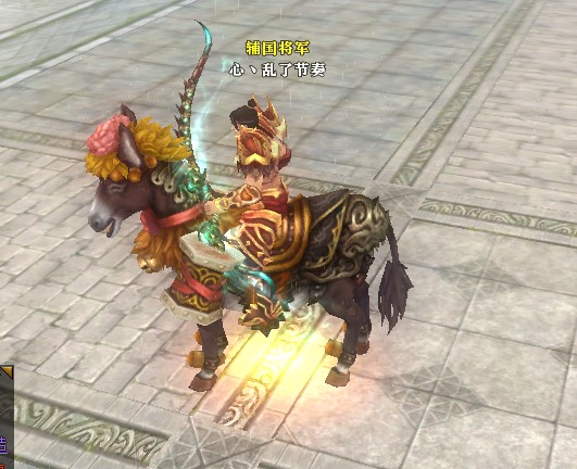 71小号,已是辅国将军,手拿养由基弓,胯下的马也贼好看。 重点是这养由基弓,真心长,好看是好看,就是有点不科学,以手握的地方为分界点,上半部长,下半部短,不知道谁能拉动并射准这样的弓!!