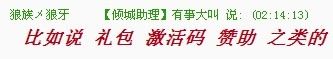 这也就是为什么谩骂一个公会的人,总会有该公会的会员自发的站出来和你口水,因为他们深爱自己的公会,就像我在各大媒体上不遗余力的维护狼族。当然真是我们的错我不会诡辩。 最后,告诉大家商业公会不只有利益,还有兄弟情。告诫各位永远不要小看一个公会的凝聚力。一个有底蕴的公会,它们都是值得尊敬的。哪怕是你的对手。散人帮想要成长没必要踩着大公会的肩膀,自己发展起来的绝对没人说你。 本人作为业余写手,冒着天下之大不韪写了这么多,写的不好多多包涵。看的顺眼的就顶两下吧,觉得我是五毛,NC啥的,喷我可以不准骂的太夸张了。拜谢所有弄用心看完的朋友,拜谢。P.S:此贴不针对任何人,不引起争议。后面有(一)的图 提前恭祝各位玩家,各大公会新年快乐。 【饿狼传说】狼族灬狼牙 2013.02.08