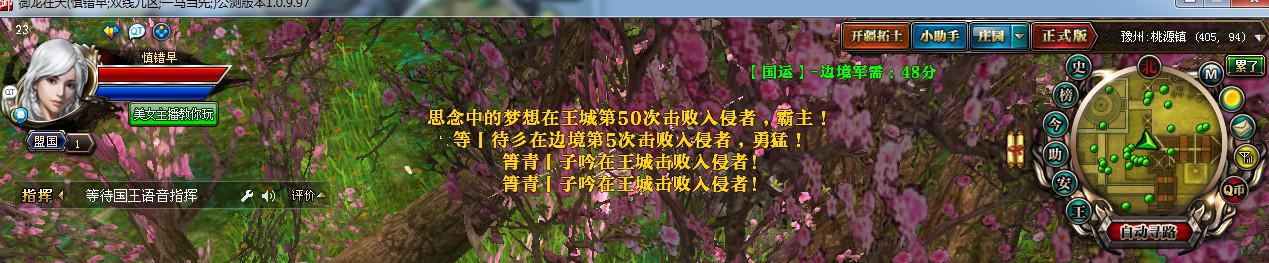 《一马当先》服务器依然热闹非凡,继传闻多位《御龙在天》高玩将空降此区之后,豫州国王公子奇重金聘请“传奇指挥” 神话大少担任豫州指挥,势要找回“场子”。神话大少的加盟消息连日来被别有用心之人大力炒作,似乎他的加入将决定此前扬州和豫州国砸的战局。事实真的如此吗?真相将在神话大少上麦的那一刻揭晓,作者很荣幸为大家报道此事。 首先请允许作者介绍龙吟天下这位 “无名小子”花无忧统战指挥。他是背水一战的豫州王,成都名将争霸赛国战取得胜利,成为国王。龙吟虎啸1V3皇城战战胜邪王。 1V3国战,双杀。这些都只是他的一小部分经历而已,但是对于《御龙在天》的玩家而言,龙吟花无忧依然是一个“无名小子”,因为他为人低调,以实力来说话,所以知道他的人并不多。就是这么一个“无名小卒”既然在今天的杨豫国砸中,把传说中的“传奇指挥”砸下麦来,不再指挥国砸。果然人外有人,天外有天,强中自有强中手,一山还有一山高。《御龙在天》果然是一个卧虎藏龙的地方,龙吟花无忧威武霸气。 豫州国运自国砸以来日渐晚开,今天国砸一小时之后,“传奇指挥”神话大少终于在万众期待中闪亮登场。当开启镖局时,龙吟花无忧率领龙吟铁骑一举攻进豫州王城,往后的每次砸车都是碾压性的进攻。历经40多分钟后,神话大少终于顶不住压力下麦停止指挥,杨豫国砸的一天也暂时告一段落。 龙吟铁骑攻进豫州王城,这已经成为了一件常有的事情。 人山人海,到处都充斥着龙吟兄弟们的身影。豫州国民们的镖车无一幸免。 自神话大少停止指挥的那一刻起,豫州国王已经放弃防御。虽然有少量的豫州国民试图抵抗,但也是徒劳无功的。 豫州王城镖局已经全部被扬州龙吟铁骑占领,豫州国民们不敢再拉镖。 龙吟天下的兄弟们在时刻准备着应战,我们不惧怕任何人。国战就应该激情澎湃,国战就应该热血沸腾。战吧,不要只是嘴上功夫! [编辑:小闲]