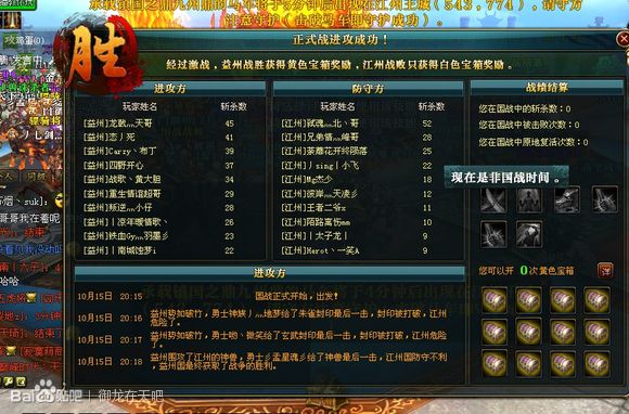 推荐阅读: 双线九区神龙一统首个九鼎公美美美飞扬,燕州欲分解幽州益州联盟 10月15日20点15分,益州国战江州正式展开,江州手握最后一个大鼎,夺取之后益州国王将成为神龙一统首个九鼎公。因为益州拥有4个大鼎,盟国幽州拥有4个大鼎,益州拿到大鼎之后将拥有5个大鼎成为九鼎公。幽州益州联盟为了这个日子等待了很久,国战没有丝毫拖泥带水,早早等候在内城入口,国战开始直接进入内城,也不管神兽保护的时间,直接开打,1分钟后朱雀打爆,2分钟后玄武打爆,3分钟后神兽直接打爆,国战取得胜利。大鼎随后出现,幽州和益州联盟跟随者大鼎到达阳平关,见证了这历史性的一刻。 虽然九鼎公已经拿到,但是益州敌对国家燕州并不愿看到现在的局面,将本国高战玩家转到益州顶国力,迫使益州幽州解盟,并挑起两国的纷争。 豫州将于16号被幽州灭国,并与幽州结为暗盟,全力打压扬州。 徐州国王悠然求大手空降让王,让人敬佩。 神龙一统正处于最激情的时刻,大家都是见证者。