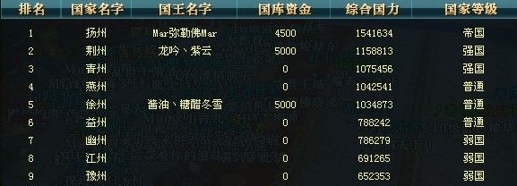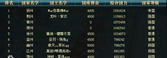 先上一张国力图,目前正在无限口水中。 看看登基的国王,有没有你认识的呢。