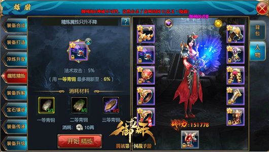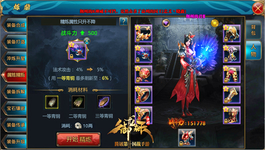 炼鼎,是加工打造装备、提升战斗力不可缺少的必经之路。在炼鼎的各种玩法中,又新增了一员,那就是“精炼属性”。精炼属性的出现,可助你在战斗力提升的道路上,如虎添翼。 超高性价比,装备精炼不可或缺 当你等级达到45级时,打开炼鼎在右侧页签上,即可看到属性精炼,轻点屏幕,即可体验精炼的飞升效果!请注意,精炼只可以在黄色、绿色、紫色品质的装备进行。 黄色品质以上的装备,将自带精炼属性,如您对属性不满意,则可以进行刷新。攻击类装备仅能使用青铜道具,防御类装备仅限铁锭道具,即可完成刷新。 精炼属性仅消耗一点铁锭或青铜等材料,花费一点点费用,就可以让你的装备得到百分比的提升,性价比相当高。 屌丝级材料,大神级装备冲刺 ????众所周知,一件装备的基础属性越好,战斗力也就越高。但想一下,如果在你的这个属性上,以百分比来加成,来提升你的战斗力,是不是让你的战斗力不止是提升,更是一个质的飞跃呢?再加之材料获取比较简单,价格也不贵,这对于急需提升战斗力的平民玩家更是一个福音。 少许一等青铜或铁锭,就可以让你的装备战力提升6%,你信么?不管你信不信,反正,我是信了,因为,我有精炼! 精炼系统,分为三个等级:一级精炼消耗一级材料(青铜或铁锭,下同),将得到1%-6%的黄色属性提升;二级精炼消耗二级材料,将得到7%-14%的绿色属性提升;三级精炼消耗三级材料,将得到15%-20%的紫色属性提升! 只升不降就是精炼,战力提升完全不费劲 精炼属性在设计上,也是本着保值和不坑的做法,保证加成数值只升不降!每次刷新属性基本都会增加该装备相应基础属性的百分比。哪怕你运气差了那么一点,也不用担心,因为这属性,不会降! 在刷新精炼属性时,您可以根据情况,选择材料等级进行刷新。请注意,装备精炼属性刷新成功后,系统不会自动跳到下一个颜色的等级,所以将军要手动选择材料等级,避免重复刷新精炼属性哦!如果装备的精炼属性已经到达当前等级材料下的最高等级,则无需再用当前等级的材料升级,材料虽便宜,但也提醒各位将军不要浪费哦! [编辑:Tya、小爱]
